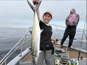 久々御来船のA様御一行にてサワラ狙いで出船! 幹事様以外初挑戦の皆さんで・・・頑張って・・・”巻き巻き!”して頂きました! 紅一点が大健闘で・・・サワラ・サゴシ・デカ太刀ゲットで・・・お土産確保! サワラ2・サゴシ3・デカ太刀3本・本命惜しいバレ3回有り・・・残念。 A様御一行の皆様・・・遠方より有り難う御座いました。来月御来船時も・・・海況・釣況・・・恵まれますように・・・ PS 秋らしくなりましたね!・・・”秋の気持ち良いシーズン!”・・・遊びに来て下さいねぇ~! 10月平日のみ空き!・11・12月土日祝ご予定の方・・・お早めの御予約を・・・お願い致します。・・・m(_ _)m ![]() ![]() ![]() ![]() |