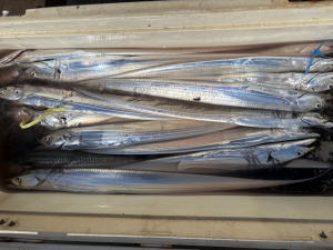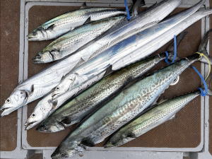 予約乗合K様御一行3名様でサワラ狙いで出船! 前日よりいい加減?良い加減!?涼しい感じの陽気で期待して出船! 朝一帰り間際に単発跳ね見られましたが…あと少し良い所流して差し上げられてないのか…!? 近所の僚船では型見れている状況でしたが…当船はスッパリ切れ&バレで…残念ながら本命型見ず。 太刀魚のお土産だけで…傷心の帰港となってしましました。参加のK様御一行の皆様…有り難う御座いました。 |