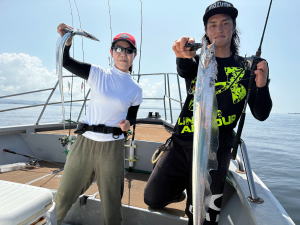 予約乗合サワラ&太刀魚で出船! 前半・後半戦サワラ…序盤戦広範囲で元気良く跳ねる状況で…期待して開始!…(・o・) 船べりでネットで救えそうな距離で…おはよう!って跳ねますがサゴシゲット!するも…潮止まりも重なり… その後続かず…残念…(-_-;)…お題目で中盤は…太刀魚狙いへ… 中盤戦太刀魚…浅場で小さめの反応ですが捉えるとジグ・ワーム・ブレード系それぞれコンスタントにヒット! 終盤戦…再度サワラ狙ってみましたが早朝と違い…水温上がって水色悪化!?…単発跳ねは確認出来るものの… 太刀魚追加のみで…終了となりました。 本命サワラちゃん…残念でしたが…参加のお三方…和気藹々でやって頂き有り難う御座いました。…m(_ _)m ![]() ![]() ![]() 昨日サンマ・本日今季お初の梨食べました!今週末からそろそろ涼しくなり…秋シーズン迎えそうですね! 18日先日講習受講した特定免許受領の為、お休みさせて頂きます。…m(_ _)m |