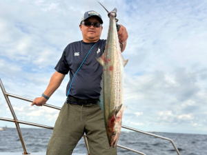 | 荒天中止続いちゃって…予約乗合ご常連さんお二人にてサワラ狙いで久々の出船! 前日スパーク!(・o・)したとの事で期待しましたが…サワラあるある?…本日…昨日の勢いは無い感じで…(-_-;) 後半心配された雨にもつかまっちゃって…本命3ヒットしましたが…バレちゃって…本命1本ゲット型見て… 他太刀魚・サバ・アジはコンスタントに釣れて…20ほどゲット!でお土は確保出来ました! 参加のお二人さん…何時も有り難う御座います。…m(_ _)m ![]() ![]() 湾内キャストでサワラの模様が出てきましたね!暑い日が続いてますが… 台風時化後…流石に秋の釣り物へ…!?…(^^;)… サワラ好きの皆さん!お早めの御来船お待ちしております。m(_ _)m |