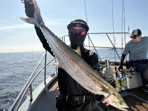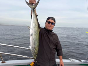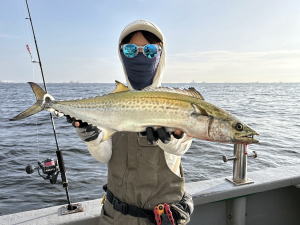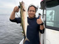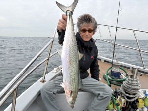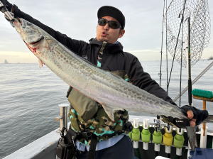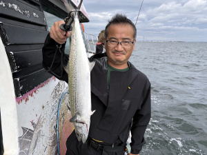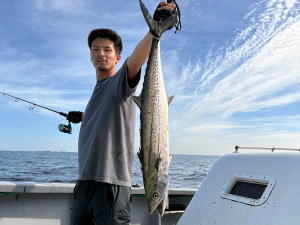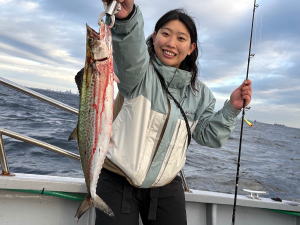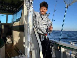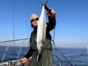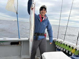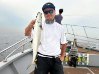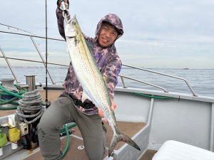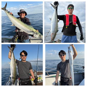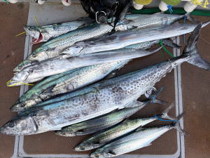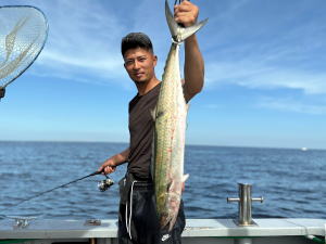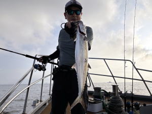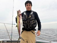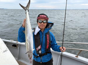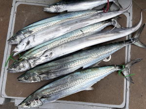 | 予約乗合K様御一行3名様でサワラ狙いで出船! 前日よりいい加減?良い加減!?涼しい感じの陽気で期待して出船! 朝一帰り間際に単発跳ね見られましたが…あと少し良い所流して差し上げられてないのか…!? 近所の僚船では型見れている状況でしたが…当船はスッパリ切れ&バレで…残念ながら本命型見ず。 太刀魚のお土産だけで…傷心の帰港となってしましました。参加のK様御一行の皆様…有り難う御座いました。 |