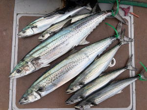 | 予約乗合サワラ&太刀魚で出船! 前半・後半戦サワラ…序盤戦広範囲で元気良く跳ねる状況で…期待して開始!…(・o・) 船べりでネットで救えそうな距離で…おはよう!って跳ねますがサゴシゲット!するも…潮止まりも重なり… その後続かず…残念…(-_-;)…お題目で中盤は…太刀魚狙いへ… 中盤戦太刀魚…浅場で小さめの反応ですが捉えるとジグ・ワーム・ブレード系それぞれコンスタントにヒット! 終盤戦…再度サワラ狙ってみましたが早朝と違い…水温上がって水色悪化!?…単発跳ねは確認出来るものの… 太刀魚追加のみで…終了となりました。 本命サワラちゃん…残念でしたが…参加のお三方…和気藹々でやって頂き有り難う御座いました。…m(_ _)m ![]() ![]() ![]() 昨日サンマ・本日今季お初の梨食べました!今週末からそろそろ涼しくなり…秋シーズン迎えそうですね! 18日先日講習受講した特定免許受領の為、お休みさせて頂きます。…m(_ _)m |