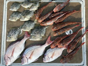 | 台風余波が心配される中でしたが…お集まり頂き…W様御一行にて青物サワラ狙いで出船! 心配された風・ウネリはたいした事無く…時化前型見たエリア転戦転戦で狙いましたが… 前日の久々の雨&北風で…ご機嫌斜め!?なのか??…サワラと思しきすっぱりカット!は有りましたが… ホウボウ・サバフグのみで…本命船に上がりませんでした。 W様御一行の皆様…最後まで頑張って頂き…有り難う御座いました。…m(_ _)m |
