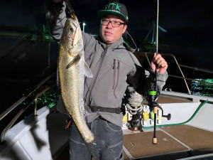 | N様御一行お二人でシーバス狙い夕方~ナイトゲームでベイエリア便で出船! 転々と狙って・・・コノシロエリアにもぶつけてみましたが・・・お一人ビッグベイトで狙っていた方には・・・ チェイスはあったようですが・・・残念ヒットならず。12ヒットの8本でした。 今年も遠方よりお越し頂き有り難う御座いました。・・・m(_ _)m ![]() ![]() |