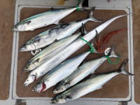 | W様御一行チャーター便にて…サワラ・青物狙いでキャスト・ジギング臨機応変で狙いました! 前半戦…キャストでサワラ狙って見ましたが…前日の大雨で雨水の影響有るようで…なかなかアタリ出ず… 型見れた僚船もあったようですが…こちらは本命っぽいスッパリとブレイク1回のみで…太刀ポッチリ。 後半戦…ジギングへ変更で100・120gジグでバーチカルに狙って…時合い短い感じでしたが… サワラ2・サンパク~イナダ5・真鯛・ホウボウ5・特大エソ(練り物にするそうです!)お土産に…!! 参加のW様御一行の皆様…本日も御来船頂き、有り難う御座いました。…m(_ _)m ![]() ![]() ![]() ![]() ![]() ![]() |
