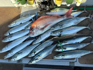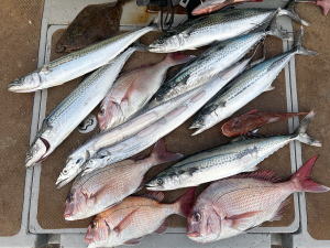 | お初の御来船H様御一行チャーター便!…朝方風強い予報で出船遅らせて…GO! 色々な魚狙って見たいとのご希望で…幹事さんにサポート頂き…仕掛け・ルアーで用意してくれて… ベイトのレンタルタックル流用で可能と思われる釣り物の…ショットガンアジ・太刀魚・鯛ラバで狙いました! 前半戦ショットガンアジ…出船時まだ風残り風裏ポイント狙って嬉しいゲストのカマス混じりで…ぽちぽち! 中盤戦太刀魚…少し風落ちてきてポイントへ…浅場で細切れ反応ぶっつけ×2でポチンカ! サイズ狙って深場にも向けましたが…こちらは…時合いもはずしているようで…型見ず。 後半戦鯛ラバ…マゴチ・ホウボウ・太刀魚・エソ・サバフグ・サメ等…釣れてきましたが…本命は… 駆け足でしたが…幹事さんのスペシャルサポートで…それぞれ何かしら釣って頂けました。 参加の皆様…有り難う御座いました。…また機会が御座いましたら…宜しお願い致します。…m(_ _)m ![]() ![]() ![]() |