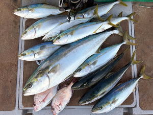 | =お知らせ= 今週平日空き日!&20(土)21(日)27(土)空き!お休み取れた方…遊びに来ませんか? チャーター便・予約乗合言い出しっぺ募集!12月土日祝ご予定の方&年末年始ご希望有れば休まず出船予定! お早めの御予約をお願い致します。 =予約乗合募集状況= 12(金)鯛ラバ&烏賊・13(土)青物&鯛ラバ・15(月)青物(ジグ・キャスト)・16(火)鯛ラバ&烏賊 24(水)鯛ラバ&青物予約乗合参加者募集! 他空き日!…予約乗合言い出しっぺ募集!御来船をお待ちしてます! 空き日詳細は予約状況のページをご覧下さい. 各種チャーター便・乗合言い出しっぺ募集! …空き日予約状況参照! オフショア便!…鯛ラバ・サワラ・青物・烏賊エギング・太刀魚等! ベイエリア便…シーバス・ロックフィッシュ・黒鯛・ショットガンアジ! 気心知れてるお仲間!・家族で・・・チャーター便ご予約!&少人数予約乗合の言いだしっぺ!・・・募集! ”海の風!にあたってリフレシュ!”・・・御予約・御来船お待ちしてます!・・・m(_ _)m |